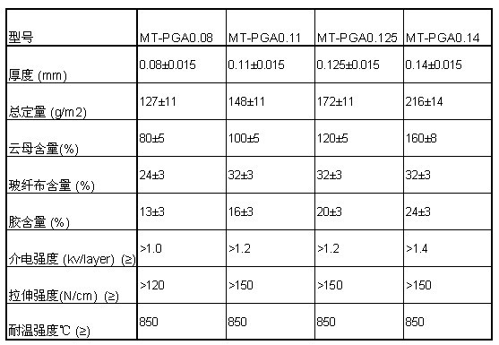 意義:M(Muskovit)-白云母;P)Phlogopit)-金云母;S(Synthetic mica)-合成云母(如氟金云 母);G(Glass cloth)-玻璃布;F(Film)-薄膜(如聚酯薄膜)。