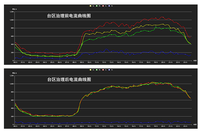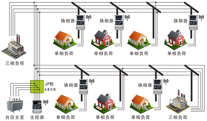 3. 精準(zhǔn)定位換相器,確保配網(wǎng)各支路逐段平衡。 獨(dú)有的逐段壓降綜合算法,優(yōu)先調(diào)整距離線路不平衡度極值處最近的換相器,由此可確保線路每處的平衡度最優(yōu),更加有效的降低中性線電流,提高末端供電電壓。 4. 對(duì)各類用電設(shè)備無(wú)不良影響。 等電壓0毫秒無(wú)縫換相技術(shù),不會(huì)造成供電中斷和電壓暫降,完全不影響用戶用電;對(duì)感性、容性、阻性負(fù)載均可穩(wěn)定可靠換相。 5. 功能靈活,參數(shù)化設(shè)計(jì)。 可設(shè)置換相條件,用戶可按需求對(duì)換相調(diào)荷進(jìn)行限制,如:負(fù)載率、不平衡度、中線電流等,只有當(dāng)滿足了設(shè)定的條件時(shí),系統(tǒng)才自動(dòng)進(jìn)行換相調(diào)荷。換相開(kāi)關(guān)過(guò)載容量可設(shè)置,換相開(kāi)關(guān)在過(guò)載時(shí)會(huì)切斷負(fù)載進(jìn)入閉鎖保護(hù),以防負(fù)載側(cè)短路或超負(fù)荷損壞設(shè)備,過(guò)載保護(hù)的限制可由用戶自行設(shè)定。主控器具備多種通信方式,便于管理監(jiān)控。主控器與換相開(kāi)關(guān)采用230MHz無(wú)線通信,同時(shí)可選RS485、GPRS等通信接口,便于與其他設(shè)備和系統(tǒng)交換數(shù)據(jù)。臺(tái)區(qū)管理分層,便于大規(guī)模部署,臺(tái)區(qū)管理按歸屬地、臺(tái)區(qū)號(hào)、換相開(kāi)關(guān)號(hào)自上而下的體系管理,在大規(guī)模部署時(shí)清晰明了而迅速定位。產(chǎn)品壽命管理,保證可靠運(yùn)行,每臺(tái)換相開(kāi)關(guān)保證換相次數(shù)不小于20萬(wàn)次。 四、產(chǎn)品參數(shù) 五、運(yùn)行案例
