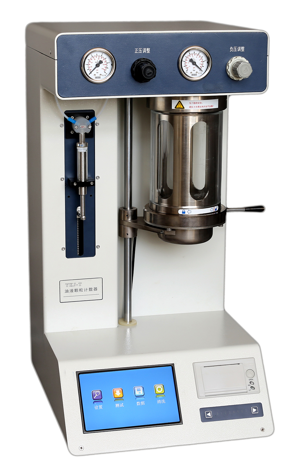 ■ 采用國(guó)際液壓標(biāo)準(zhǔn)委員會(huì)制定的遮光計(jì)數(shù)原理 ■ 內(nèi)置四個(gè)常用標(biāo)準(zhǔn)GJB 420B、NAS1638、ISO4406、ГOCT17216-71 ■ 采用先進(jìn)的高壓注射泵進(jìn)樣系統(tǒng),支持自定義體積 儀器簡(jiǎn)介 YKJ-T型自動(dòng)油污顆粒計(jì)數(shù)器是依據(jù)GB/T 18854-2002(ISO11171-1999)等國(guó)家及國(guó)際標(biāo)準(zhǔn)研制的專門用于油液中污染粒子等級(jí)檢測(cè)的裝置。適用于液壓油、潤(rùn)滑油、電廠抗燃油、絕緣油和透平油等。該裝置完全符合相應(yīng)國(guó)軍標(biāo)及國(guó)際標(biāo)準(zhǔn)。YKJ-A采用光阻法(遮光法)原理研制,可提供快速、準(zhǔn)確、可靠、可重復(fù)的檢測(cè)結(jié)果?商峁┩暾奈廴颈O(jiān)測(cè)分析報(bào)告。大屏幕觸摸式人機(jī)操作界面,操作簡(jiǎn)單方便。 主要特點(diǎn) ■ 采用國(guó)際液壓標(biāo)準(zhǔn)委員會(huì)制定的光阻(遮光)法計(jì)數(shù)原理 ■ 采用先進(jìn)的高壓注射泵與正壓結(jié)合的進(jìn)樣系統(tǒng),進(jìn)樣速度穩(wěn)定,取樣精度高 ■ 可自行設(shè)定取樣體積,方便檢測(cè) ■ 內(nèi)置四大常用標(biāo)準(zhǔn)GJB-420B、NAS1638、ISO4406和ГOCT17216-71 ■ 內(nèi)置兩條標(biāo)定曲線,兼容所有國(guó)內(nèi)外標(biāo)準(zhǔn) ■ 支持自定義標(biāo)準(zhǔn)測(cè)試 ■ 全功能自動(dòng)操作,無(wú)需外接電腦和打印機(jī) ■ 使用激光二極管作為光源,性能優(yōu)異、使用壽命長(zhǎng) ■ 采用瓶取樣方式,壓力范圍寬,可對(duì)不同粘度的檢品測(cè)試 ■ 具有數(shù)據(jù)存儲(chǔ)功能,便于用戶查看 ■ 結(jié)構(gòu)簡(jiǎn)潔大方,觸摸屏操作,操作簡(jiǎn)單方便