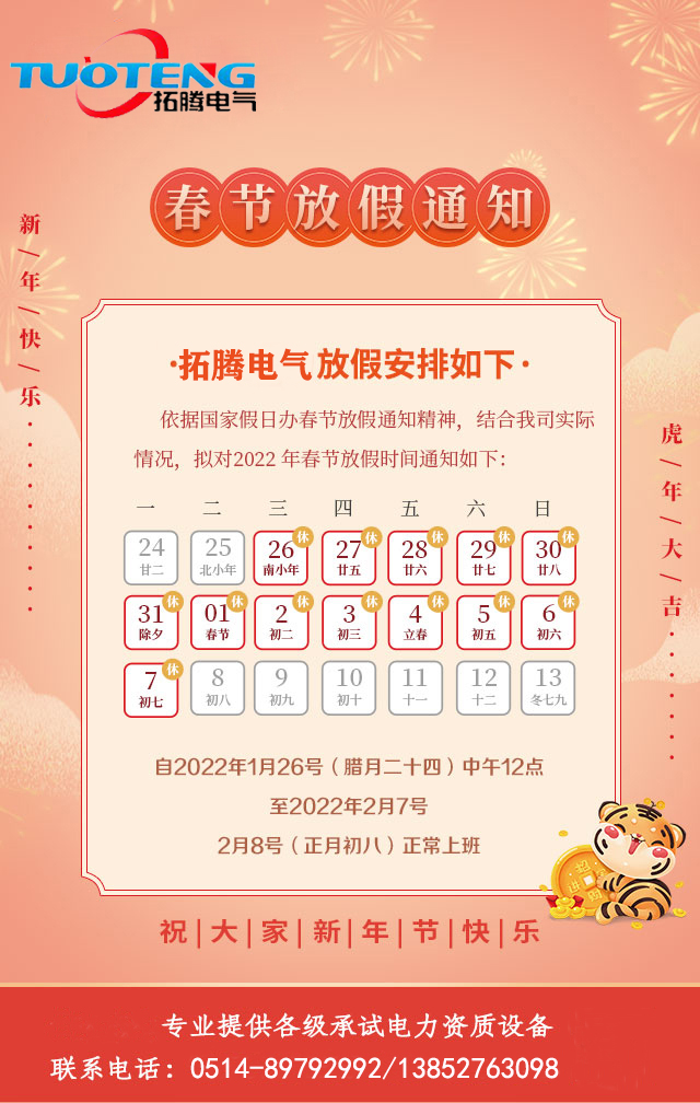 拓騰電氣2022年春節(jié)放假通知~ |