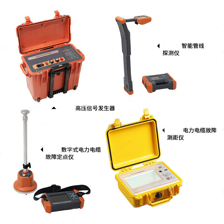 本系統(tǒng)包括電纜測試高壓信號發(fā)生器、電力電纜故障測距儀、電纜故障定點(diǎn)儀以及智能化地下管線探測儀。此四款設(shè)備可配和使用,也可以單獨(dú)分開使用。其設(shè)備件數(shù)、體積、量均大幅縮減,且功能強(qiáng)大、簡單易用、小巧便攜,是傳統(tǒng)設(shè)備的換代產(chǎn)品。
