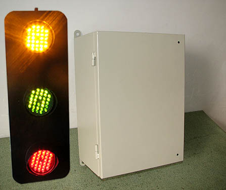 是專門用于實時監(jiān)視行車、龍門吊等起重設備的三相電源的信號指示,以防止設備電源的缺相造成的不良后果。該產(chǎn)品采用LED進口超度發(fā)光二極管制成,分三種顏色( 黃、綠、紅)分別指示電源的三相,可視距離約300米,壽命大于十萬小時,優(yōu)于其他同類產(chǎn)品。外殼采用電鍍冷軋板及靜電粉末噴塑工藝,美觀精致,室外防腐性能極佳。 功率低,耗電省。燈體可與滑觸線并排安裝,也可安裝在兩端墻體上,可任意調整角度,大視角為150度,行車駕駛員和地面工作人員都可看到。防護等級為IP56。