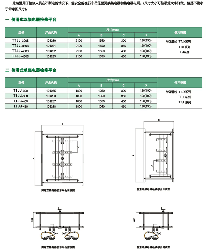 此裝置用于檢修人員在不斷電的情況下,能安全的在行車吊籠里更換集電器和繼電器電刷。(尺寸大小可按吊籠大小訂做,但是不能小于示意圖尺寸