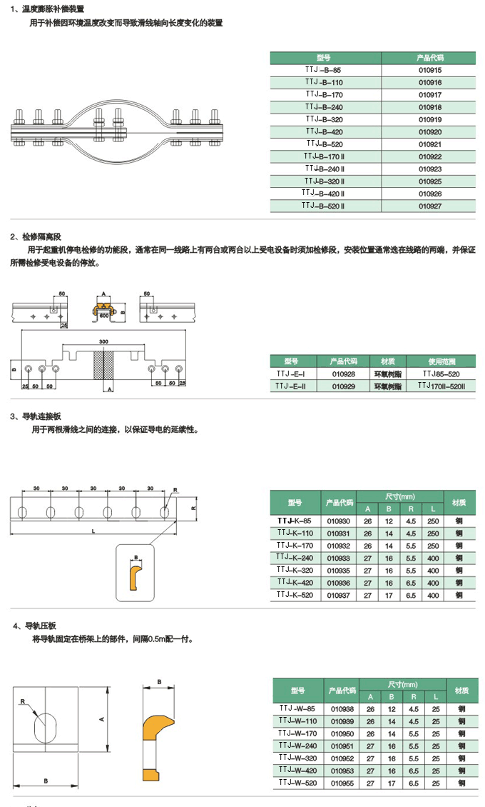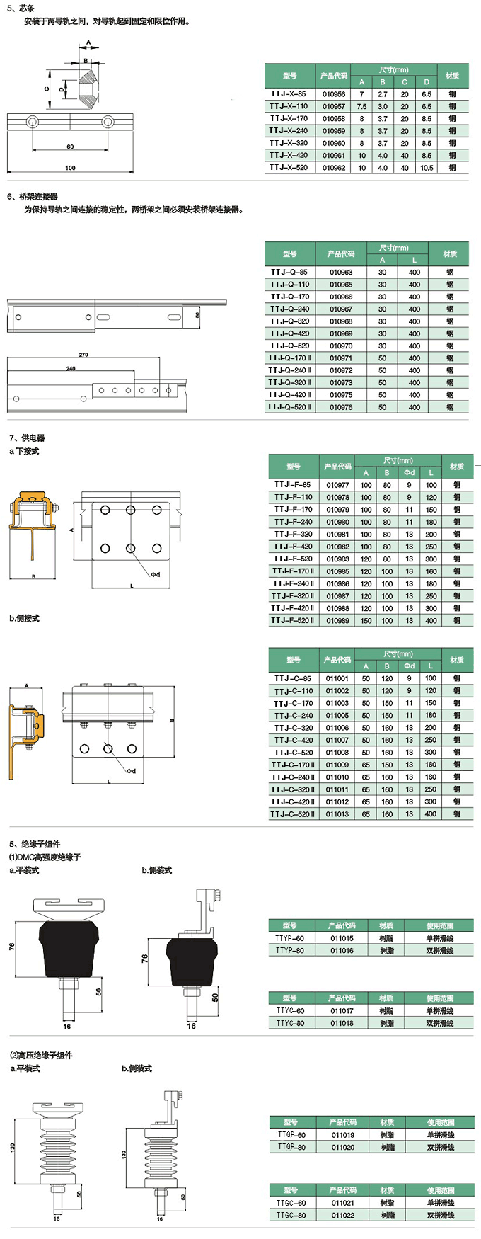 滑觸線分為單線式和雙線平行式饋電式兩種,除雙線式以TTJ-□Ⅱ表除外,單線式不另加注。