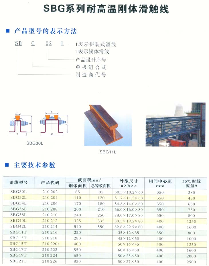 SBG系列耐高溫剛體滑觸線