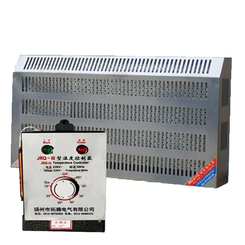拓騰電氣公司新研制的JRQ系列溫控取暖器,產(chǎn)品安全可靠,也方便安裝。該產(chǎn)品可供野外工作車輛,活動板房、實驗室及潮濕環(huán)境取暖,辦公室等場所作為保溫取暖的全自動溫控取暖器。當(dāng)溫室達(dá)到你所設(shè)的溫度時自動關(guān)閉,低于此溫度時則自動開啟。 本款系列加熱器需配JRQ-III溫度控制儀