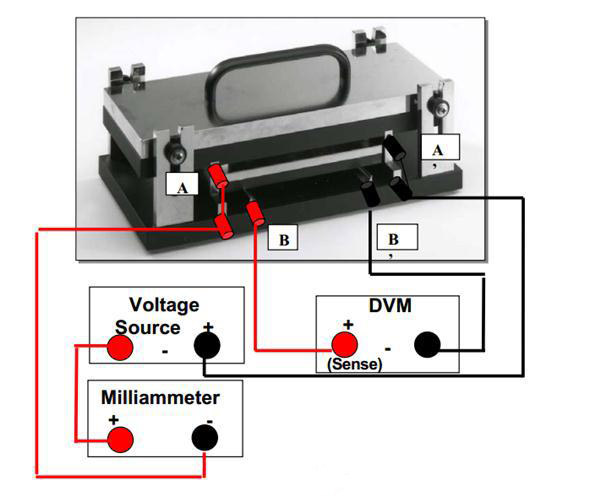 V=電位電極(B-B′)或?yàn)殡娏魍ㄟ^(guò)試樣(A-A')的電位差(V);