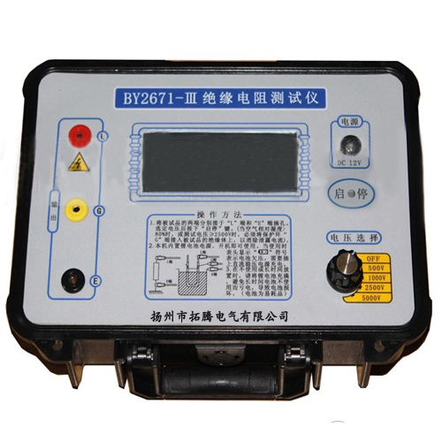 BY2671-III數(shù)字壓絕緣電阻測試儀是本公司在原有產(chǎn)品BY2671系列基礎上新開發(fā)的一款,本儀器增加了大屏幕液晶顯示,讀數(shù)更清晰,電壓增加到5000V/10000V,短路電流達到大2mA,更適合現(xiàn)場需要。
