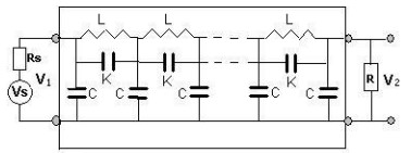 變壓器繞組的幅頻響應(yīng)特性采用圖1所示的頻率掃描方式獲得。連續(xù)改變外施正弦波 激勵(lì)源VS的頻率f(角頻率ω=2πf),測(cè)量在不同頻率下的響應(yīng)端電壓V2和激勵(lì)端電壓V1的信 號(hào)幅值之比,獲得指定激勵(lì)端和響應(yīng)端情況下繞組的幅頻響應(yīng)曲線。圖中:L、K及C分別代 表繞組單位長(zhǎng)度的分布電感、分布電容及對(duì)地分布電容,V1、V2分別為等效網(wǎng)絡(luò)的激勵(lì)端 電壓和響應(yīng)端電壓,VS為正弦波激勵(lì)信號(hào)源電壓,RS為信號(hào)源輸出阻抗,R為匹配電阻。