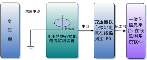 變壓器鐵芯接地在線監(jiān)測系統(tǒng)采用精度電流傳感器,安裝在鐵心接地引下線上,通過對鐵心接地電流的監(jiān)測,能及時發(fā)現(xiàn)內(nèi)部絕緣受潮或受損、鐵心多點接地、箱體內(nèi)異物、油箱油泥沉積等故障,對事故做到早預防早處理,減少停電時間,提供電可靠率。主要應用于壓變電站、變電所、發(fā)電廠對運行中的變壓器鐵心接地電流進行監(jiān)測,超值報警。